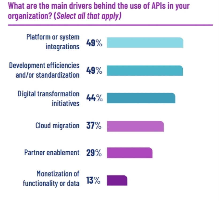 This is where API testing steps in. It offers a comprehensive approach to validate APIs’ functionality, reliability, performance issues, and security. As per AI Multiple Research, the main factors behind using APIs in organizations are as follows: