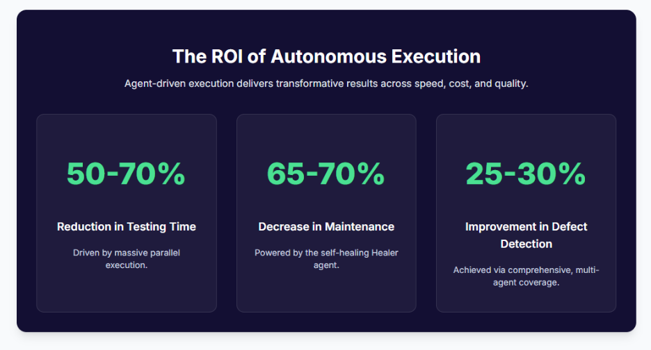 - Eliminate Maintenance Costs and Reallocate Talent: The Healer agent directly attacks the single largest hidden cost in most QA organizations: script maintenance. By automatically fixing broken tests, Healer allows organizations to reduce the time and effort spent on test script maintenance by an incredible 65-70%. This frees your most valuable engineers from low-value repair work, allowing you to reallocate their expertise toward innovation and complex quality challenges that truly move the needle.