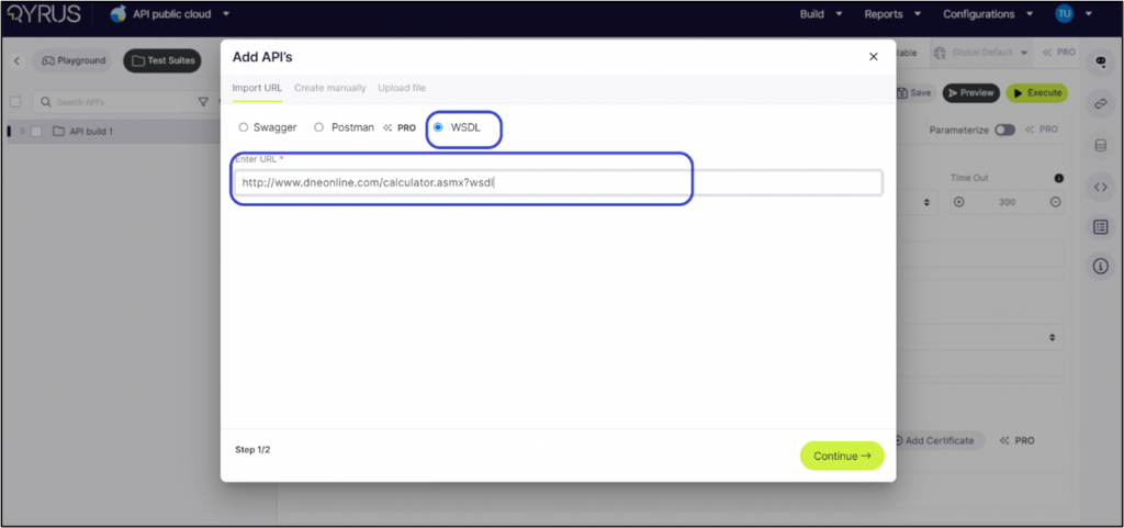 One efficient method of creating APIs is through URL imports. This process supports two primary formats: Swagger and WSDL*. Depending on your project’s specifications, you can choose the format that best aligns with your requirements.