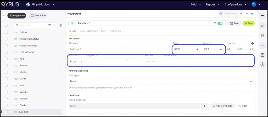 Protocol Configuration: The platform facilitates toggling between HTTP and HTTPS protocols, allowing users to secure API calls by opting for HTTPS where applicable.
