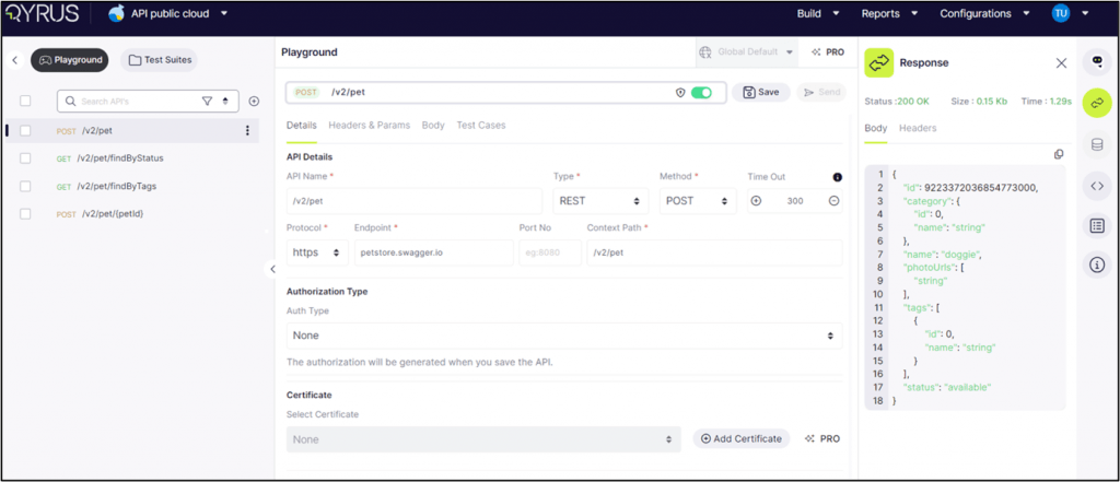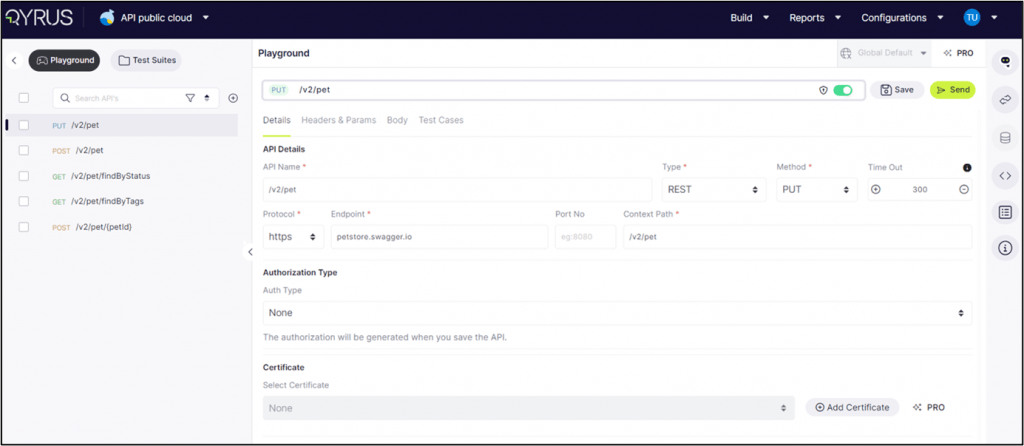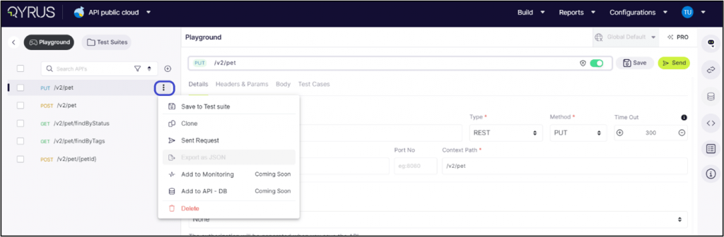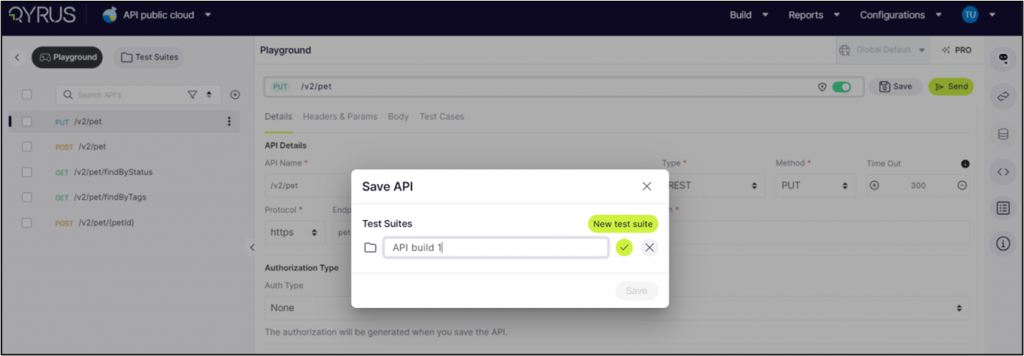 Saving to Test Suite: First, click on ‘Save to test Suite’ to add an API to a specific Test Suite.