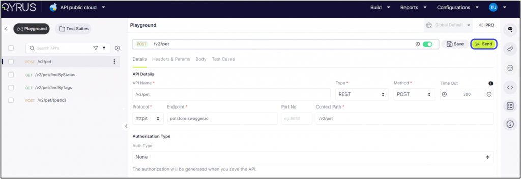Sending an API: This option helps you test your API’s functionality in real-time. Choose ‘Send’ to execute the API call and view the response, which helps you validate its performance.
