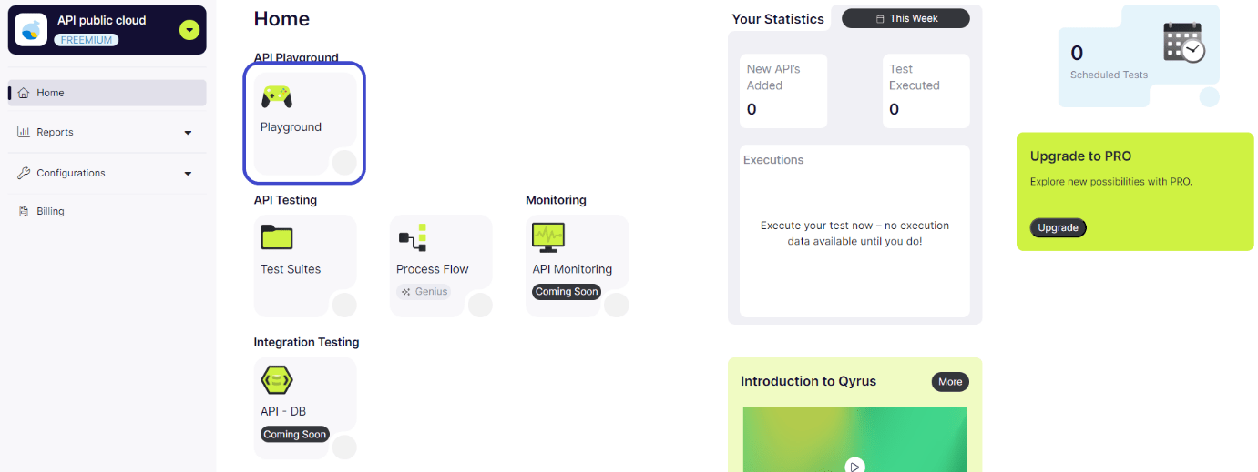 Step 1: From the dashboard, click on the ‘Playground’.