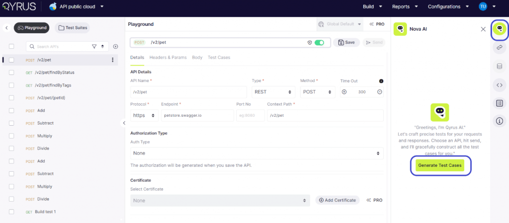 Step 1: Click on Nova and choose to generate test cases.