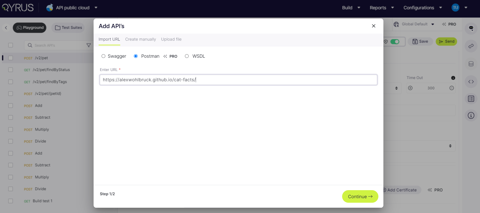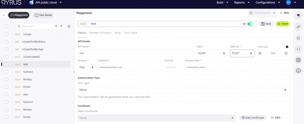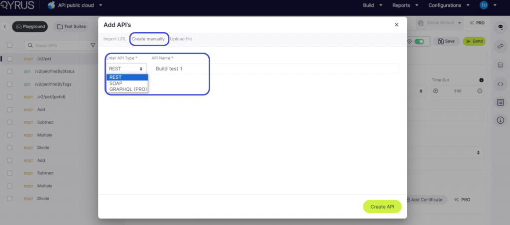 Project Creation under QAPi (Qyrus API Software) Pro Model