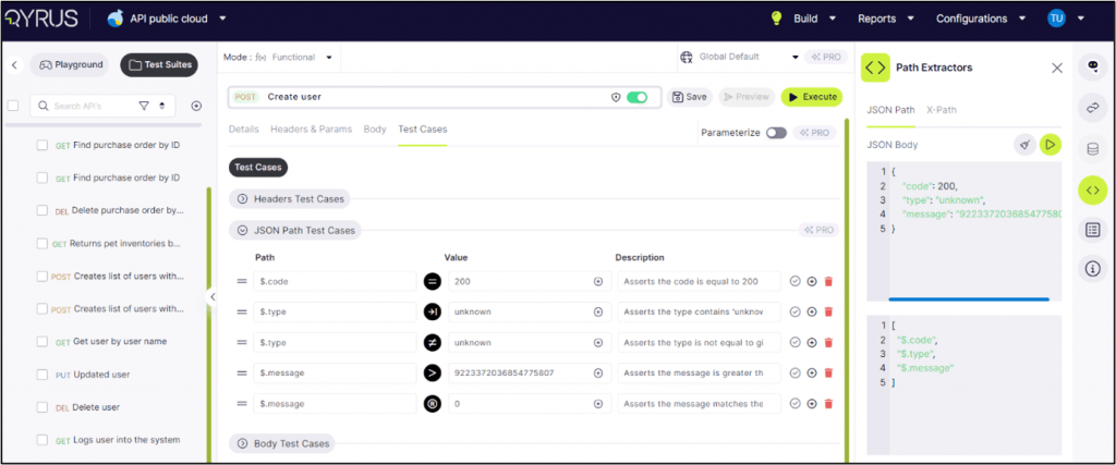Step 12: In Pro mode, JSON path test cases are also accessible.