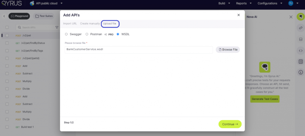 Note: Follow the same steps as the Import URL. Use Nova AI for generating test cases.