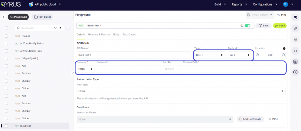 Protocol Configuration: The platform facilitates toggling between HTTP and HTTPS protocols, allowing users to secure API calls by opting for HTTPS where applicable.