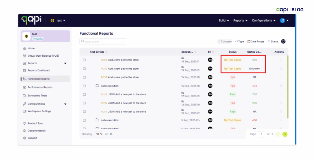 Inconsistent reporting interfaces created diagnostic blind spots for users. Critical data like HTTP response codes remained buried in detailed views. Tests executed without assertions displayed ambiguous results, leaving teams guessing about actual outcomes.