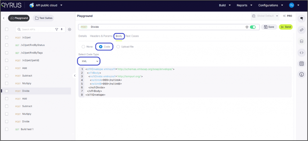 Within the Body tab, users have two options for inputting data. They can opt to either enter the code directly or upload a file.