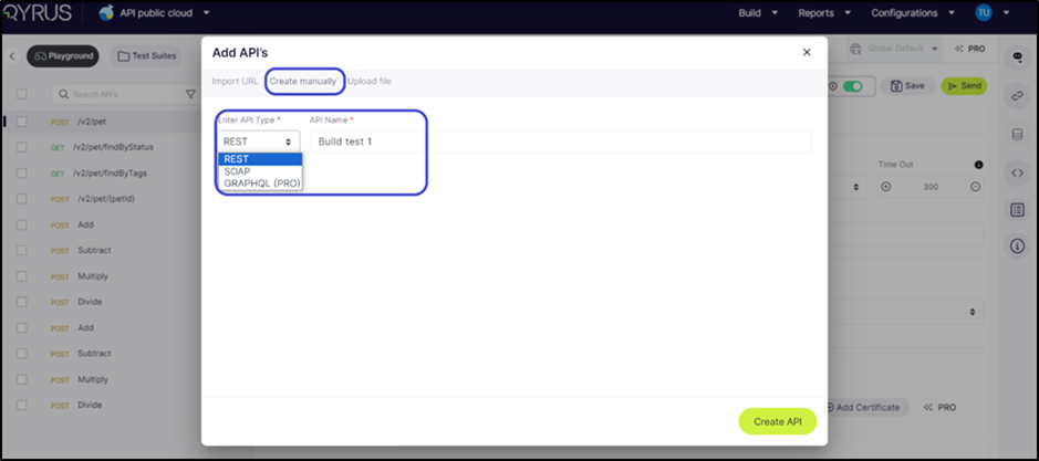 Click on Add API and choose the ‘Create manually’ option