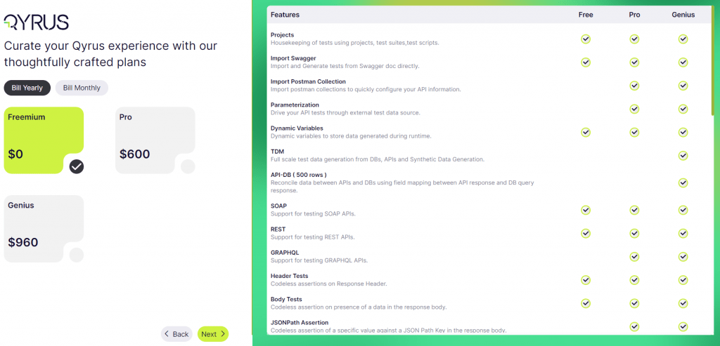 The Freemium plan is a perfect entry point if you are new to Qyrus or want to experiment with its features before accessing. Here’s what you get with the Freemium plan: