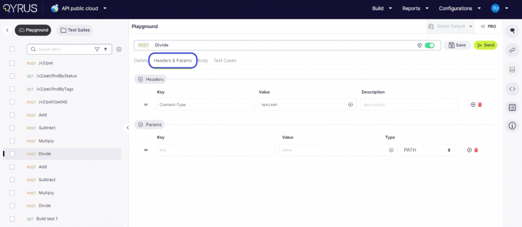 In the Headers and Params tab, users can add, delete, and modify both the key and value, as well as the type of each parameter. This functionality allows for precise customization and configuration of API requests, ensuring accurate and effective testing.