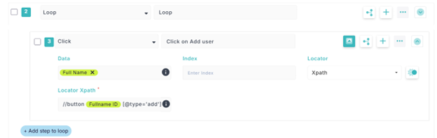 We have enhanced our web testing capabilities by enabling the combination of both dynamic (variable data, e.g., from a loop’s iteration or a data source) and static (user-defined text) input within the locator field for steps inside a loop. This allows for the construction of adaptive locators on the fly.