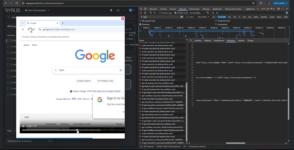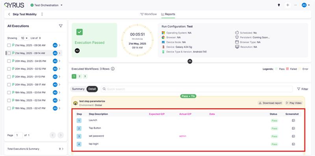 We’ve introduced a significant enhancement to our consolidated reporting in Test Orchestration: a single video per workflow execution. This means that for workflows involving both Web and Mobile services, a single, consolidated video recording will be generated, seamlessly combining the visual recordings from both service interactions into one comprehensive playback.